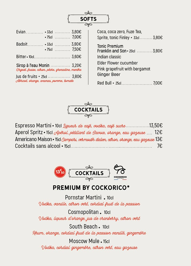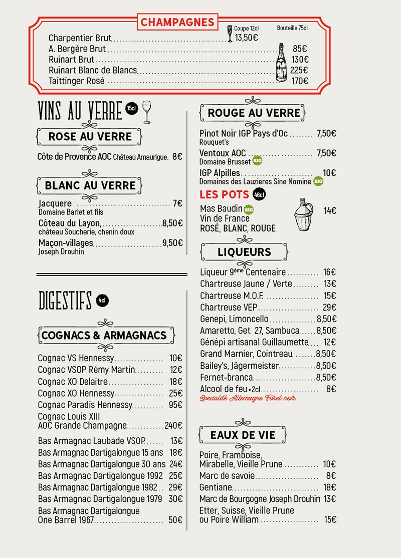 Drinks menu